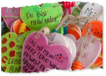 Für große Herzen gibt es kleine Herzen im Atelier mit Sprüchen und vieles mehr...